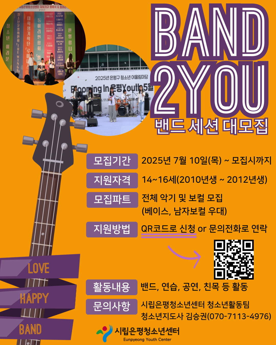 ¿ì¸® ½Ã¸³ÀºÆòû¼Ò³â¼¾ÅÍ ¹êµå 2YOU¿¡ ¼¼¼ÇÀ» ´ë¸ðÁýÇÕ´Ï´Ù!🎹🎸🎤 ¾Ç±â, º¸Äà µî ´Ù¾çÇÏ°Ô ¸ðÁýÇÏ´Ï À½¾ÇÀ» »ç¶ûÇϴ û¼Ò³â ¿©·¯ºÐÀÇ ¸¹Àº °ü½É°ú È«º¸¸¦ ºÎʵ右´Ï´Ù!!! *Á¦¸ñ : ¹êµå 2YOU ¼¼¼Ç ´ë¸ðÁý!🔥 *¸ðÁý±â°£ : 2025³â 7¿ù 10ÀÏ(¸ñ) ~ ¸ðÁý½Ã±îÁö *Áö¿øÀÚ°Ý : 14~16¼¼(2010³â»ý ~ 2012³â»ý) 🚨(¼öÁ¤)🚨ÁßÇлý 2010~2012³â»ýÀ» ´ë»óÀ¸·Î ¸ðÁýÇÕ´Ï´Ù. *Èñ¸Á¾Ç±â : Àüü ¾Ç±â ¹× º¸Äà ¸ðÁý(º£À̽º, ³²ÀÚº¸Äà ¿ì´ë) *Áö¿ø¹æ¹ý : ½Ã¸³ÀºÆòû¼Ò³â¼¾ÅÍ·Î ¿¬¶ô(QRÄÚµå) *Ȱµ¿³»¿ë : ¹êµå ¿¬½À, °ø¿¬, Ä£¸ñ µî Ȱµ¿ *¹®ÀÇ»çÇ× : ½Ã¸³ÀºÆòû¼Ò³â¼¾ÅÍ Ã»¼Ò³âȰµ¿ÆÀ û¼Ò³âÁöµµ»ç ±è½Â±Ç 070-7113-4976 #½Ã¸³ÀºÆòû¼Ò³â¼¾ÅÍ #ÀºÆò±¸ #û¼Ò³â¹êµå #¸ðÁý #º£À̽º #º¸Äà #´ë¸ðÁý