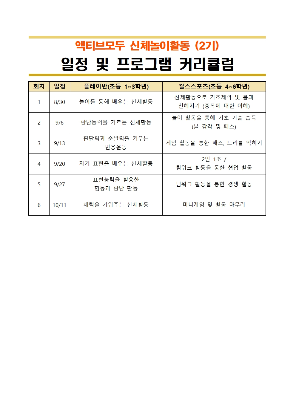 ⭐¾×Ƽºê¸ðµÎ ÇÁ·Î±×·¥Àº ÃÊ·Ï¿ì»ê°ú ³ªÀÌŰÄÚ¸®¾Æ°¡ ½ÅüȰµ¿ÀÌ ºÎÁ·ÇÑ Ã»¼Ò³âµéÀ» À§ÇØ ½ºÆ÷Ã÷¿¡ ´ëÇÑ ±àÁ¤ÀûÀÎ °æÇèÀ» ÁÙ¼ö ÀÖµµ·Ï Áö¿øÇÏ´Â ÇÁ·Î±×·¥À̸ç ÃÑ 6ȸ±â·Î ÁøÇàµË´Ï´Ù.
