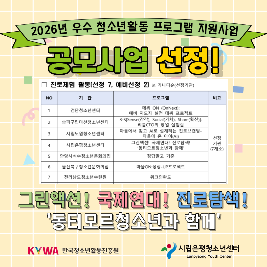 - ÇÁ·Î±×·¥¢¾2026³â û¼Ò³â Àü¿ë½Ã°£¿äÀÏÁ¦ '¸ù¶¥¾ÆÁöÆ®' ¿î¿µ ¾È³»¢¾2026.02.27