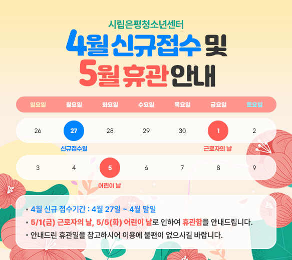 - ÇÁ·Î±×·¥(6¿ù 13ÀÏ, 9¿ù 12ÀÏ)2026³â ÀºÆò±¸ û¼Ò³â ¾î¿ï¸²¸¶´ç ¿¬°£ ÀÏÁ¤ ¾È³»2026.04.10