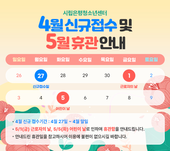 - °øÁö(6¿ù 13ÀÏ, 9¿ù 12ÀÏ)2026³â ÀºÆò±¸ û¼Ò³â ¾î¿ï¸²¸¶´ç ¿¬°£ ÀÏÁ¤ ¾È³»2026.04.10
