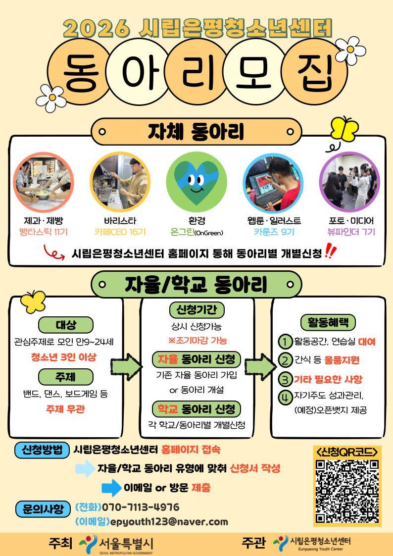 ✅Áö¿ø ÀÏÁ¤ - ¼·ùÁ¢¼ö : »ó½Ã¸ðÁý(¸¶°¨ ÈÄ º°µµ°øÁö) - °á°ú¹ßÇ¥ : °³º°°øÁö ⠀ ✅ÀÚÀ²¡¤Çб³µ¿¾Æ¸® ½Åû¹æ¹ý (1)°Ô½Ã¹°¿¡ QRÄÚµå ȤÀº ½Ã¸³ÀºÆòû¼Ò³â¼¾ÅÍ È¨ÆäÀÌÁö (2)÷ºÎÆÄÀÏ ´Ù¿î·Îµå ÈÄ ¢¹ ½Åû¼ ÀÛ¼º ¢¹ À̸ÞÀÏ·Î Á¦ÃâÇϱ⠡ØÀÛ¼ºÀÌ ¾î·Á¿î °æ¿ì ¹®ÀÇÁÖ¼¼¿ä! ¡ØÀ̸ÞÀÏÁÖ¼Ò : epyouth123@naver.com